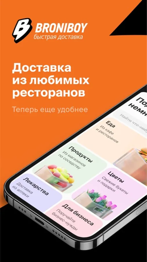 C доставкой домой или в офис закажите в приложении Broniboy любимую еду из ресторанов или покупки из любого магазина. Отправить что-то другу или клиенту тоже можно!