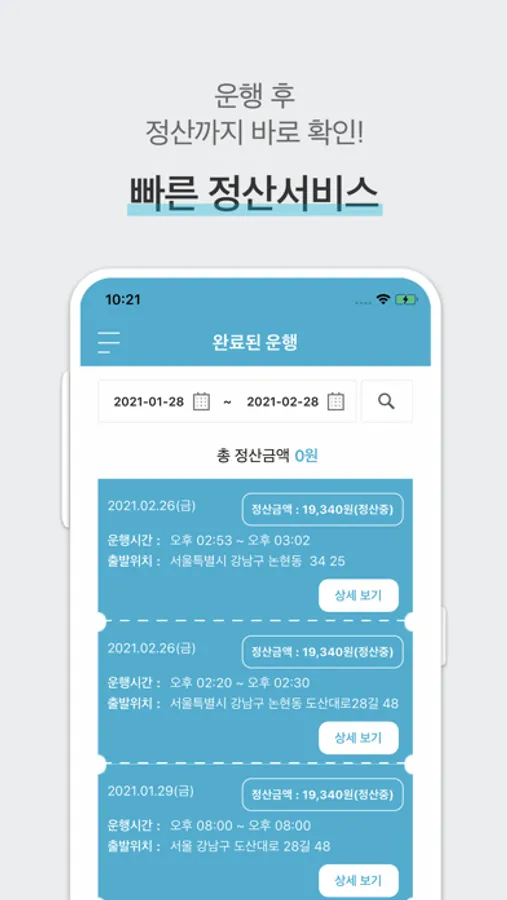 이제는 모시러 앱을 통해서 운행 배차와 정산을 편하게 확인할 수 있습니다.