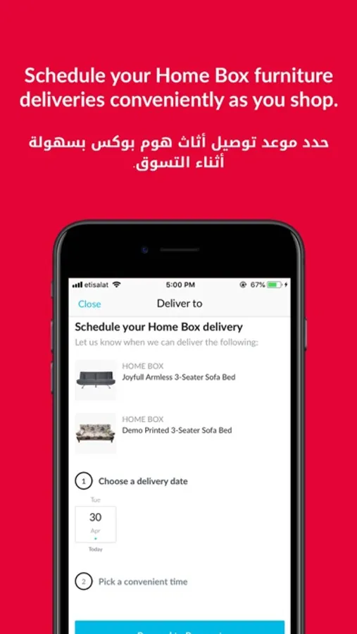 • حدد موعد توصيل الأثاث الخاص بك بكل سهولة وراحة واستمتع بالتركيب المجاني.