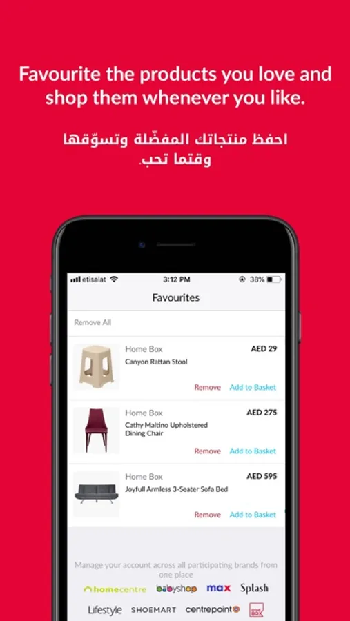 • احفظ المنتجات التي تحبها وتسوّقها وقتما تشاء.