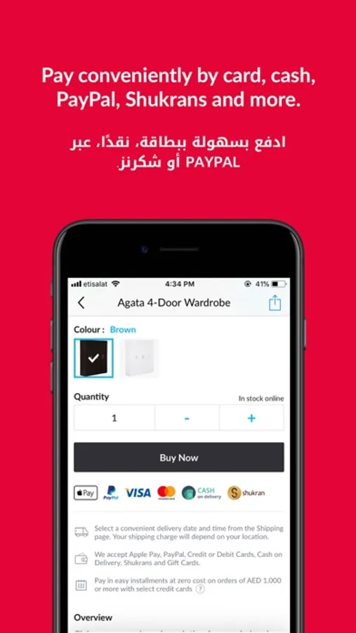 Enjoy free delivery on orders over AED 250 (UAE), SAR 250 (Saudi Arabia) or BHD 25 (Bahrain) and on furniture orders over AED 1,500 (UAE), SAR 2,000 (Saudi Arabia) or BHD 150 (Bahrain). Make the most of our Promise Plus guarantee with a 2-year limited warranty, price guarantee and much, much more.
