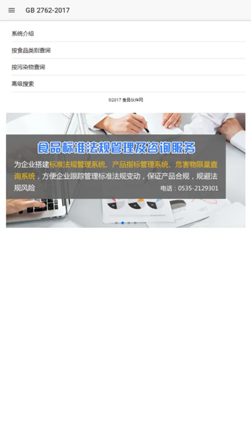 GB 2762-2017查询系统由食品伙伴网信息服务部根据《食品安全国家标准 食品中污染物限量》(GB 2762-2017)拆解整理而成,数据库具有数据高度集成化、系统化的优点,数据专人维护,更新及时,用户可以实时查询到食品中污染物限量要求。