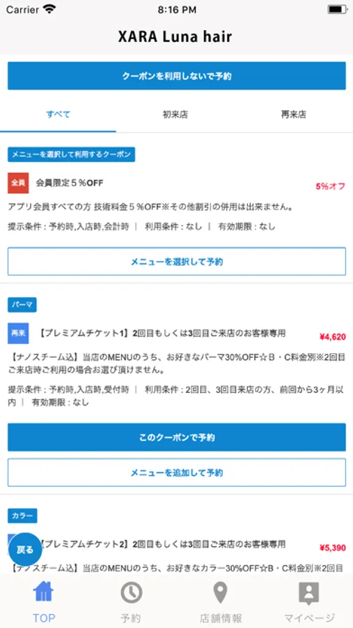 お得なクーポンが配信されます。ネット予約時にクーポン利用での予約も可能なので来店時もスムーズに施術頂けます。