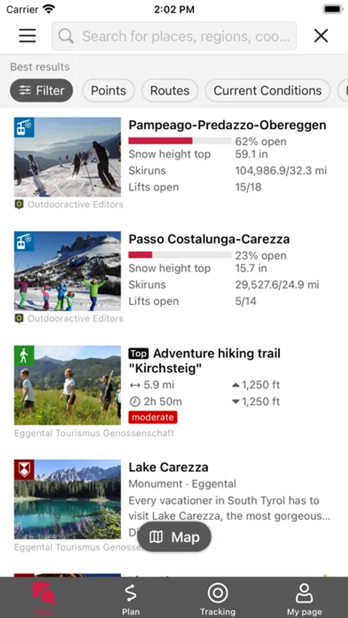 You can get detailed descriptions, technical information, maps and GPS directions that you can even save offline for your summer and winter outdoor activities in the Dolomites of Eggental.