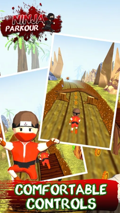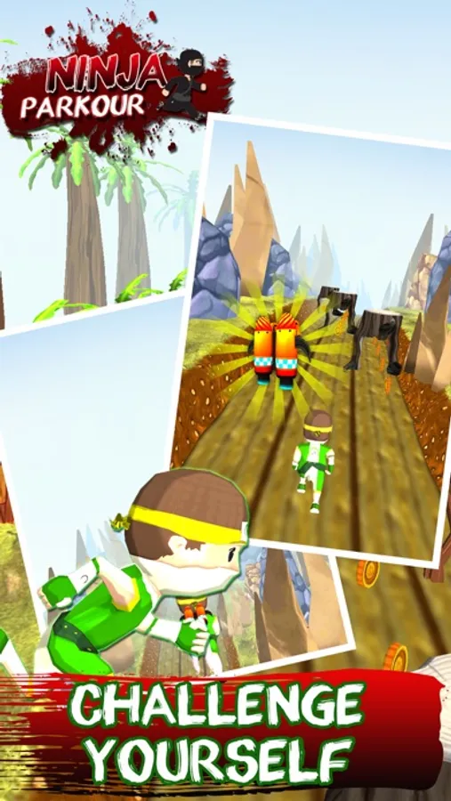Ninja Parkour is a very interesting runco game. Now can get a lot of people's favorite, crazy running, jumping, rolling and sliding, so you intoxicated in the park cool! Explore dangerous cliffs, mines and forests, there are a variety of dangerous obstacles: rocks, trees, ladder, roots, do you think you are the best ninja? Prove to me! Put your ninja skills in the test and show you everything you've done! You can get four special skills to help you run faster and farther, there are small rockets to help you fly on the blue sky, gold doubles, magnets to absorb more gold, jumping shoes can help you jump higher, easy to cross obstacle. Come and create your own best record, farther the better yo!