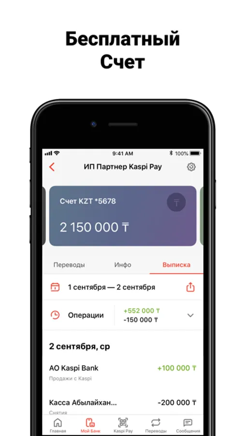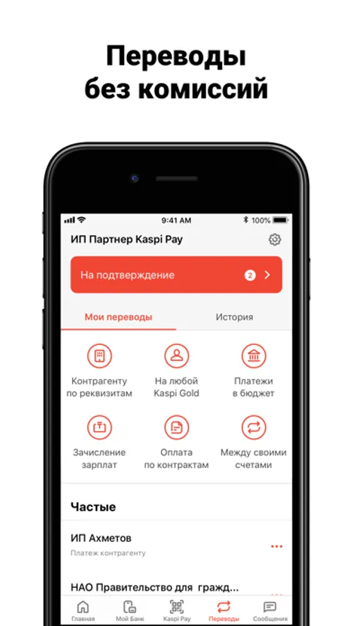 • Переводы контрагентам по реквизитам. На счет в Kaspi без комиссии