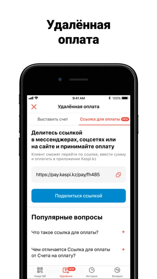 Ваши клиенты могут оплачивать покупку удалённо в приложении Kaspi.kz