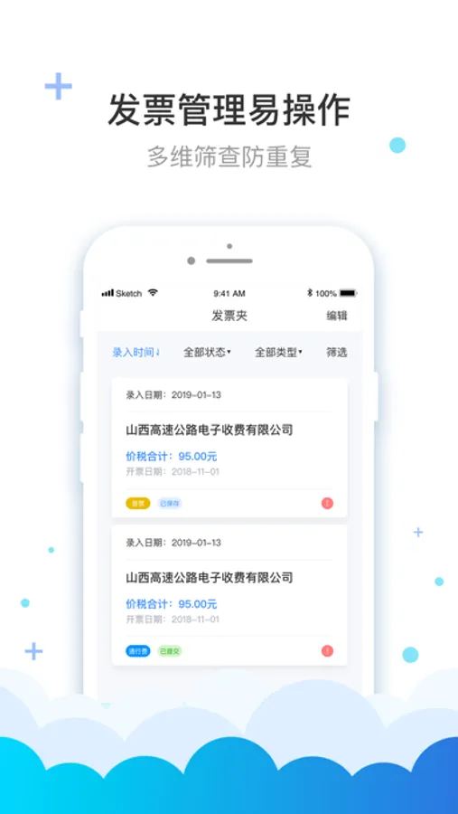 费耘发票查验、发票管理、发票认证抵扣软件,为企业实现发票真伪查验、发票查询、发票查验、电子发票查重管理及企业发票管理。鉴于规模企业普遍存在财务规范化管理及发票合规管理需求,通过扫描发票的二维码,查询并返回发票全票面信息,帮助企业实现发票真伪查验、发票查重、校验企业名称及纳税人识别号。记录发票从交票、认证、抵扣的不同状态,并通过认证到期预警,实现发票过程管理,提高企业工作效率,降低企业成本。