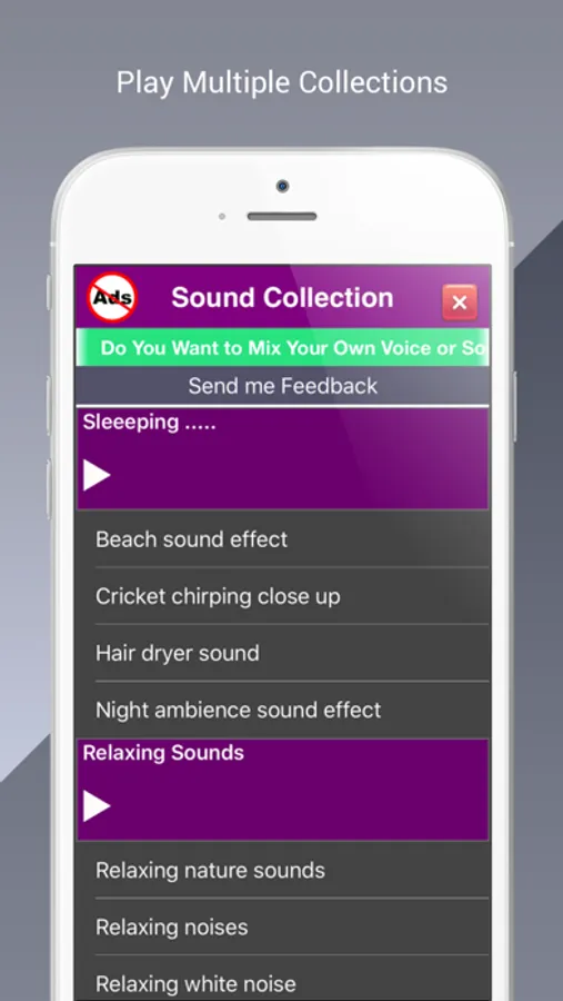 Select sounds and melodies that you like, combine them and adjust the volume of each sound to create a mix. Add one of our meditations specially designed for sleep, lay back, listen, and enjoy falling asleep. It’s that simple and it works. Create different and new mixes every time!