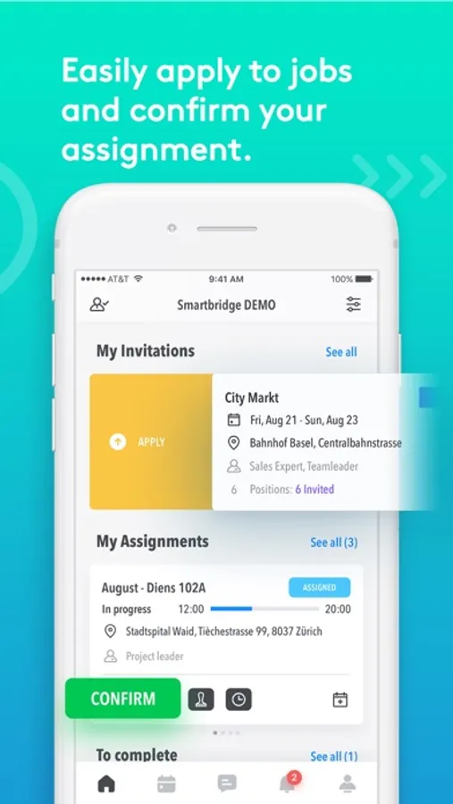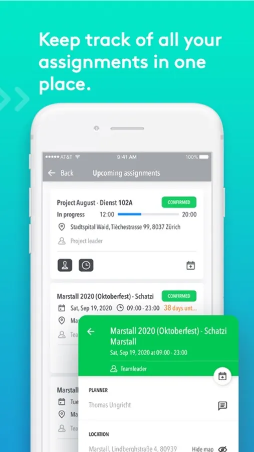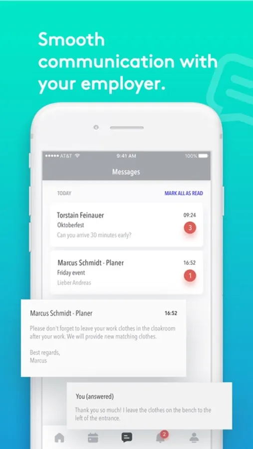 Staffcloud keeps you up-to-date on your job assignments. Your scheduling and your communication with your employer will be a walk in the park. The app provides you with all the important information about your assignments, such as the working time, the location or all crucial documents. Synchronize your personal calendar with your scheduled jobs in the app and make sure that you will be reminded for your jobs. The internal communication system makes your communication with your employer pretty easy. You are able to manage all your personal data which helps your employer to be up-to-date about all your changes.