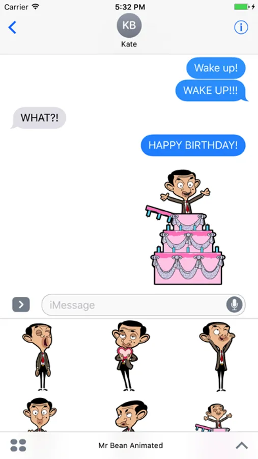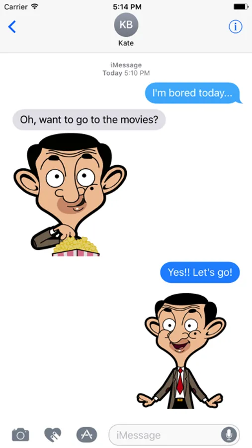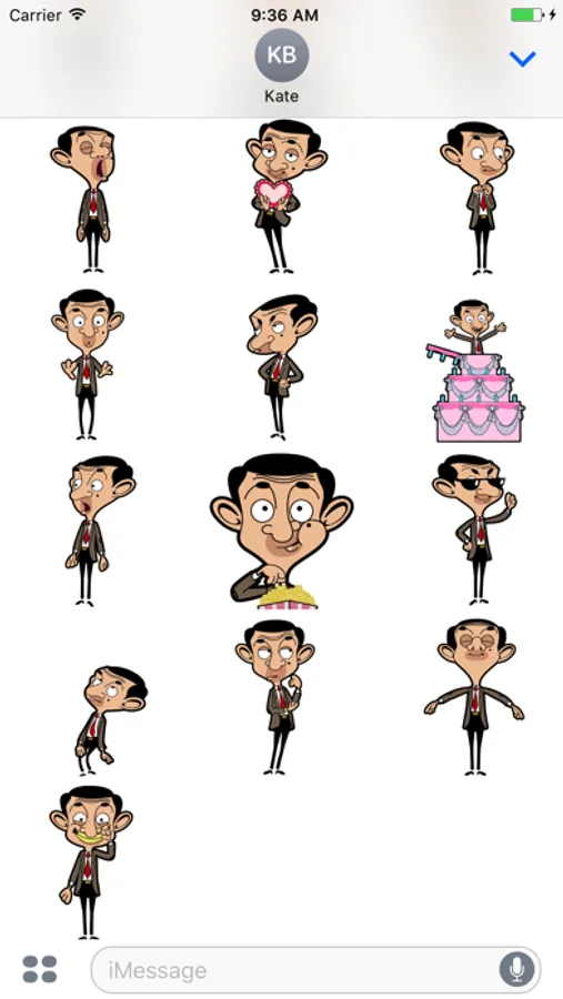 With this brand new pack of animated stickers, Mr Bean is on hand to laugh at your funny friends, and yawn at your boring ones. He’ll even help you say “Be Mine” to that special someone…