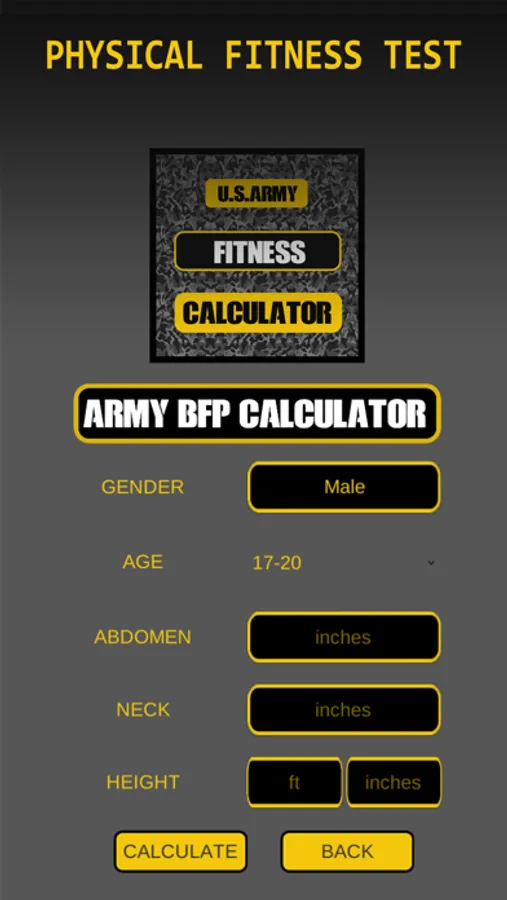 There is no other APFT program as complete as this one! Updated publications and forms to most current versions to date. The Army Fitness APFT Calculator calculates and fills out Army Physical Fitness Test score cards and Army body fat worksheets based on U.S. Army APFT and weight control program standards! It includes alternate aerobic events and extended scale scores.