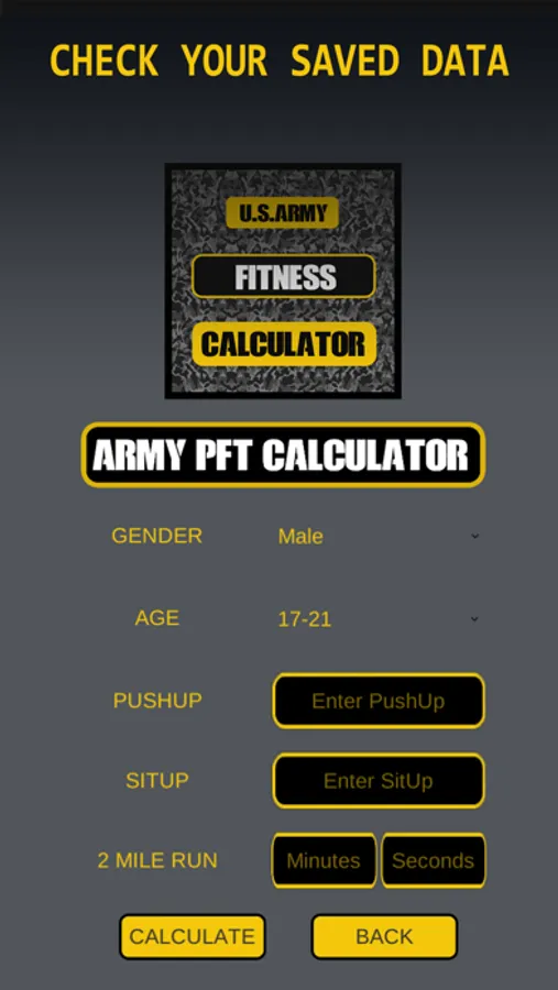 APFT scores are calculated instantly! Normal, extended scale, or profile! As requested by users, minimums, maximums, and current points scored is automatically shown.