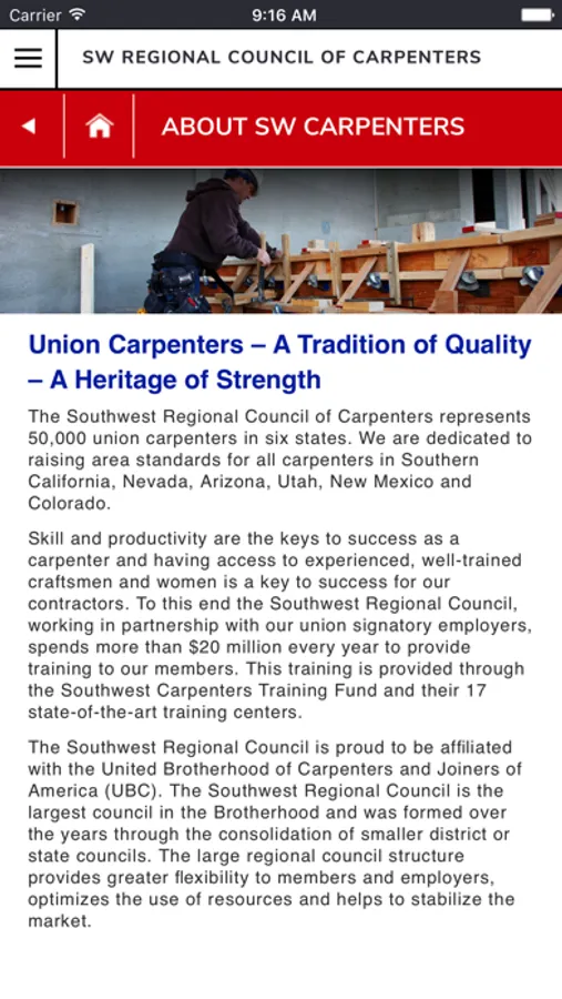 The SW Carpenters mobile app is the official app of the Southwest Carpenters Regional Council.
