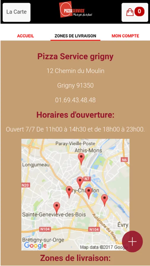 L'application Iphone/Ipad de Pizza Service grigny vous permet de commander en ligne ou par téléphone via votre application . Vous pouvez consulter notre carte et choisir vos produits .