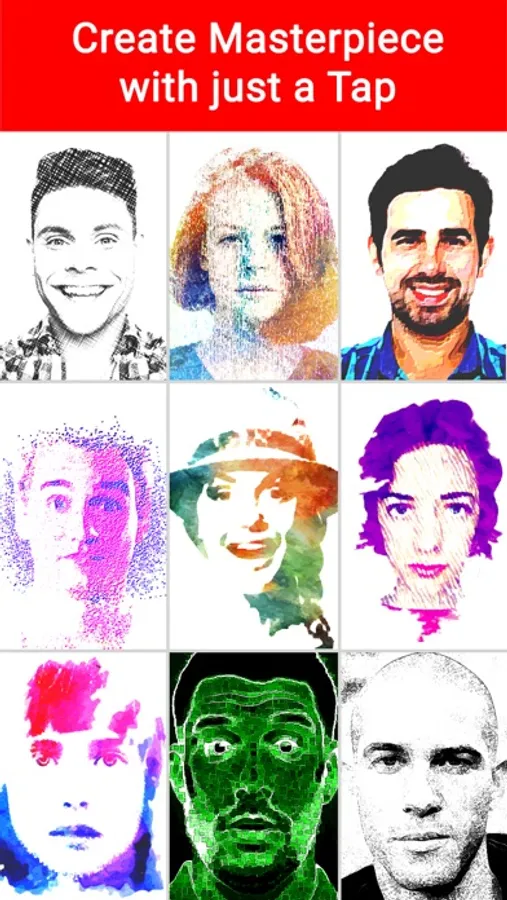 Effects include Watercolor, Oil Painting, Spray Painting, Different Sketch Styles and even Wire Craft. There are some Amazing effects which you won't find in any other App. E.g. our droplet effect.