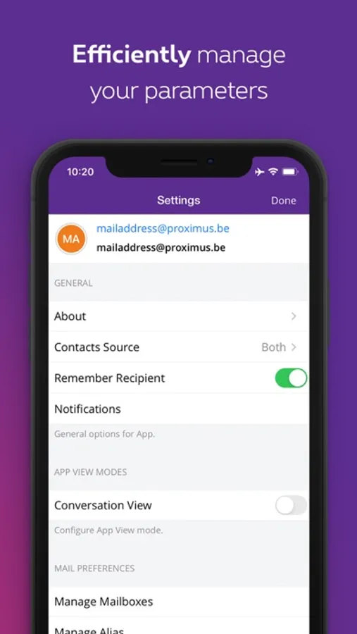 Proximus mail is an easy-to-use application. With just one click, you can read, send or receive your e-mails from a mobile device. Thanks to its push notification, you will always be notified of new messages. Never lose contact with your friends and family again.