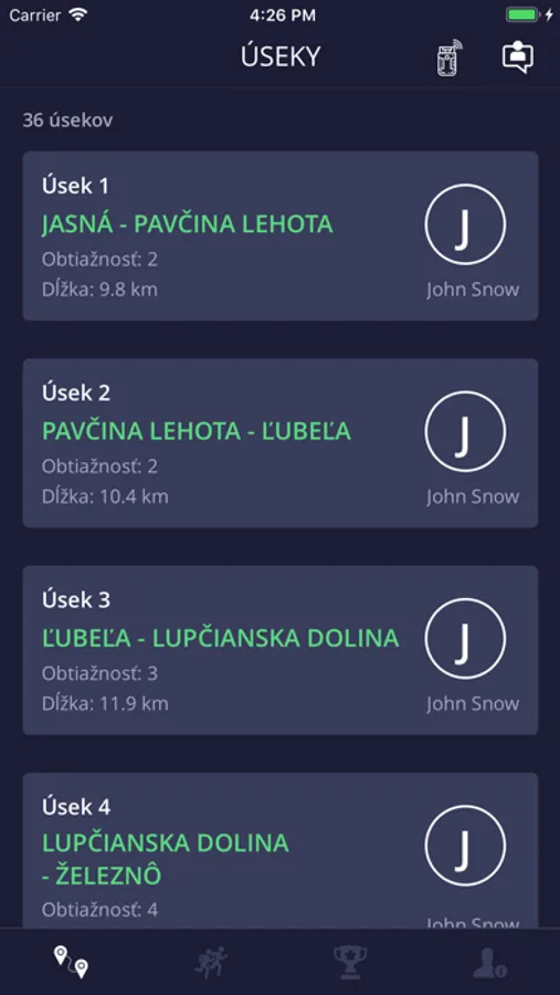 Taktiež je možné jednoduchou formou cez aplikáciu spravovať zoznam všetkých úsekov a členov tímu na nich priradených, zmeniť zraneného bežca na vybranom úseku odoslaním sms správy organizátorovi.