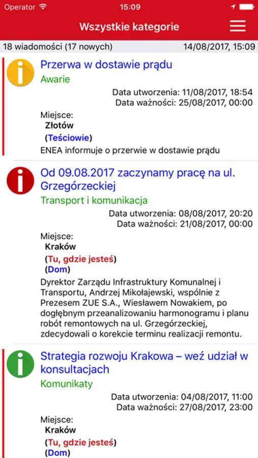 Chcesz być na bieżąco informowany o ważnych wydarzeniach związanych z miejscem, w którym aktualnie przebywasz lub z miejscami, które Cię interesują (Twój dom, dom rodziców, miejsce wypoczynku dzieci itp.)?