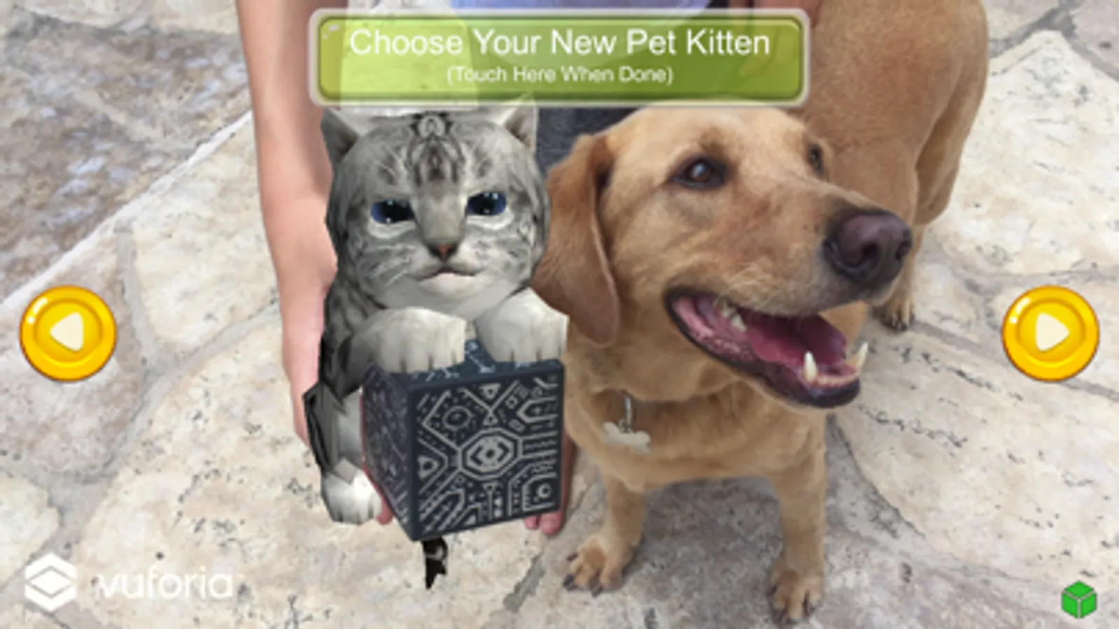 You can choose your own Augmented Reality Virtual Kitten. Using the Merge Cube, your Kitten comes to life in the real world through the camera on your device.
