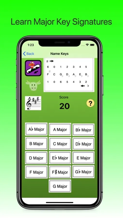 8 Games in one App to improve your Music Theory through play. Colourful, fun games.