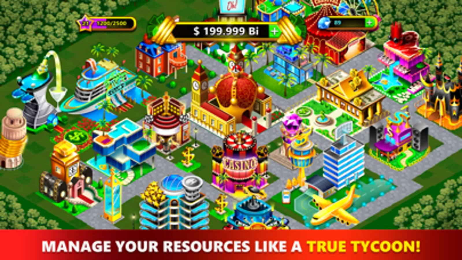 • CUSTOMIZE your city with unique buildings like thematic hotels, business towers and other special constructions that open up thrilling minigames like casino, xx and xx!