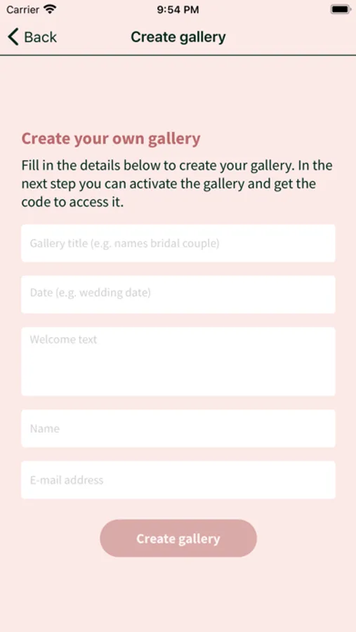 With this access code they can enter your gallery and share their beautiful photos and videos so you can collect all those nice memories and always have them on hand.