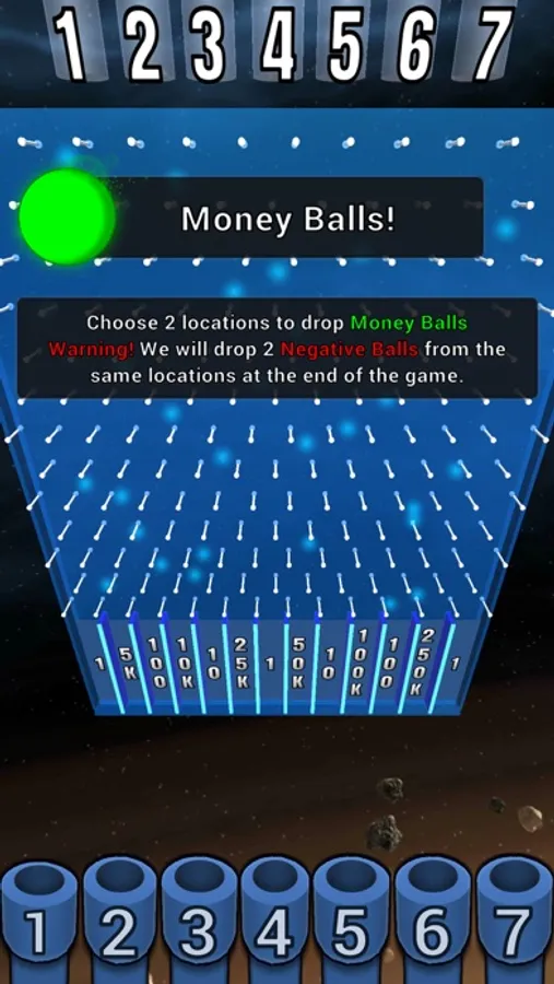 Choose 2 locations on The Wall to drop money balls. These balls will instantly gain you money wherever they land. Be warned though- Negative Balls will be dropped from these same locations at the end of the game.