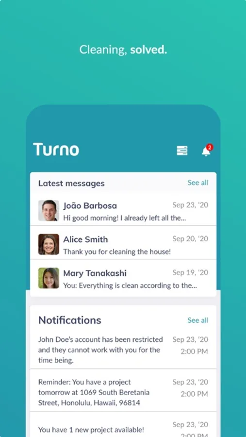 • Automate your schedule: see and schedule all your clients' turnovers automatically. When a new turnover appears on their calendar you will be notified, as well as when updates to the cleaning projects are made.