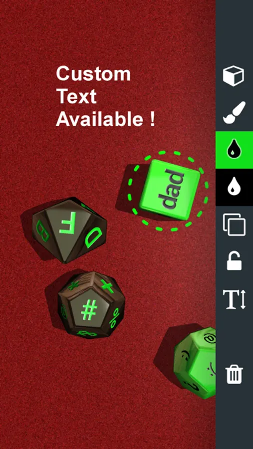 Contains a full set of realistic 3D dice to play your favorite role-playing games