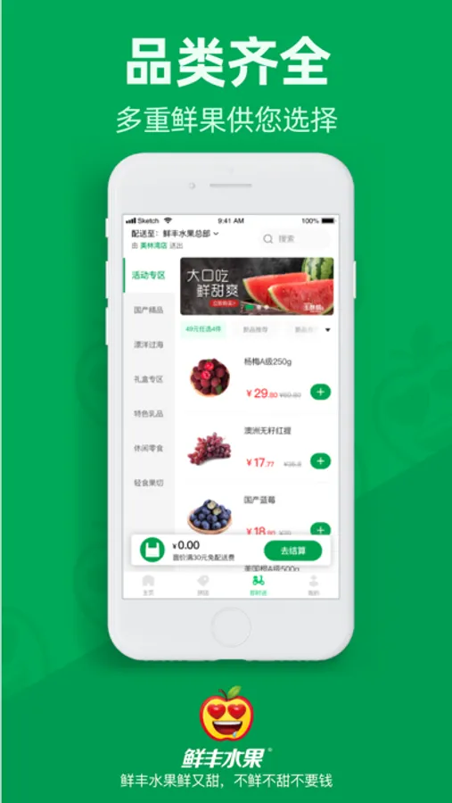 【快速送达】懒得出门怎么办,鲜丰APP,1小时极速送达