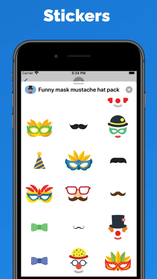 Funny mask mustache hat pack is the best sticker pack app for all the person who love send messages around the world! Enjoy your everyday life, make your conversations more exciting and bold with Funny mask mustache hat pack !