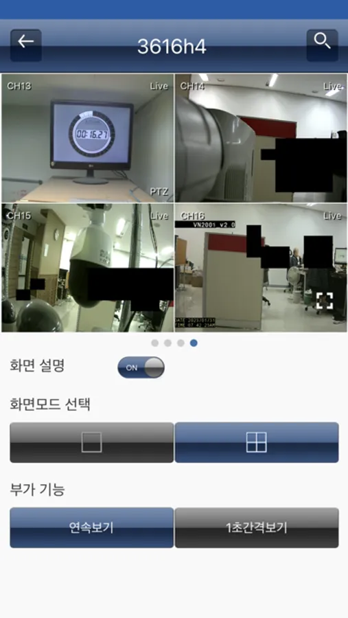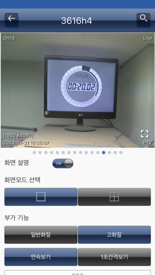 Individual cameras or split screens of multiple cameras can be viewed. PTZ cameras can be controlled.