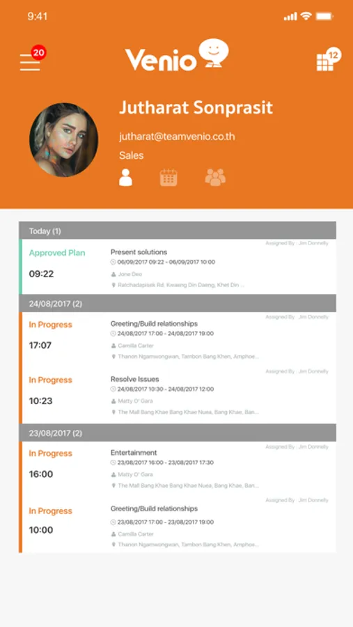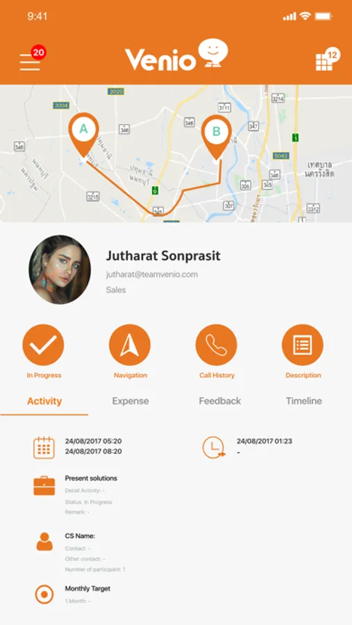 Venio เป็นแอพการบริหารงานด้านลูกค้า และแสดงตำแหน่งพนักงานในการเข้าพบลูกค้า ที่แม่นยำ และมีประสิทธิภาพมากที่สุด โดยมีการใช้เทคโนโลยี WIFI และ GPS ในการติดตาม จะช่วยให้คุณ: