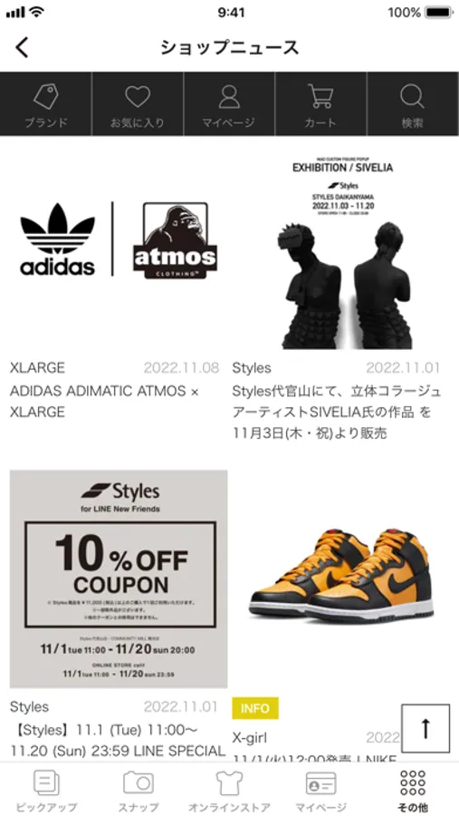 XLARGEやX-girlなど、各ブランドのショップを検索できます。