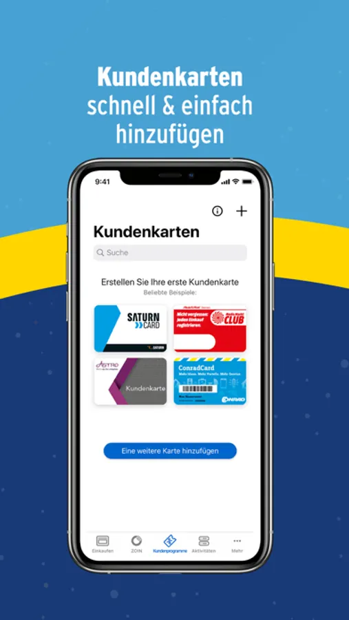 - Kundenkarten schnell & einfach hinzufügen: Mit dieser Funktion von HYPO NOE Pay haben Sie alle Ihre Kundenkarten immer dabei, ohne dass Ihr Geldbörsel aus allen Nähten platzt!
