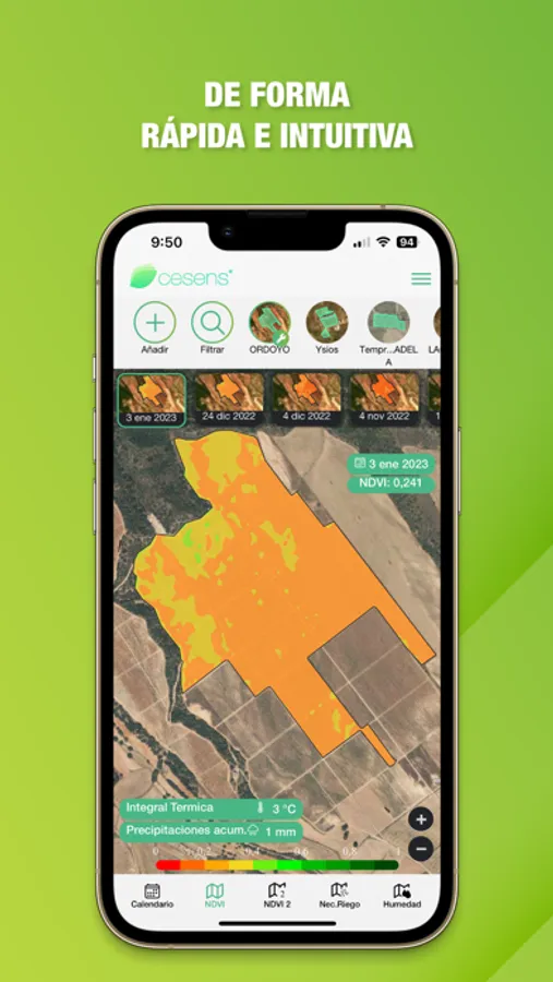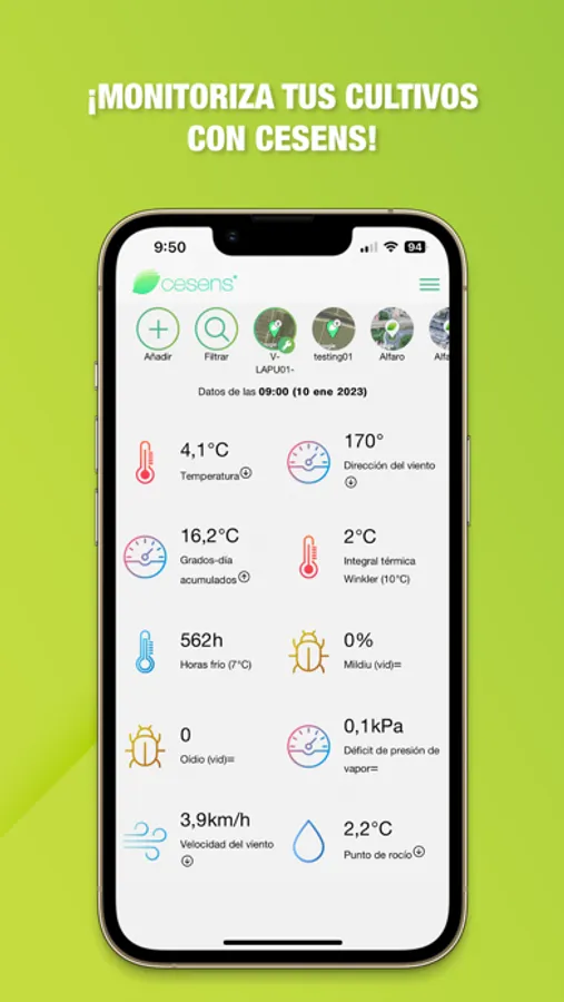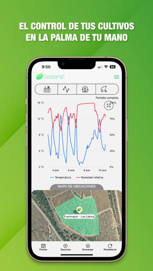 Permite ver los datos en tiempo real de tus estaciones y realizar seguimiento de toda la información agroclimática recogida por tu red de estaciones Cesens®.