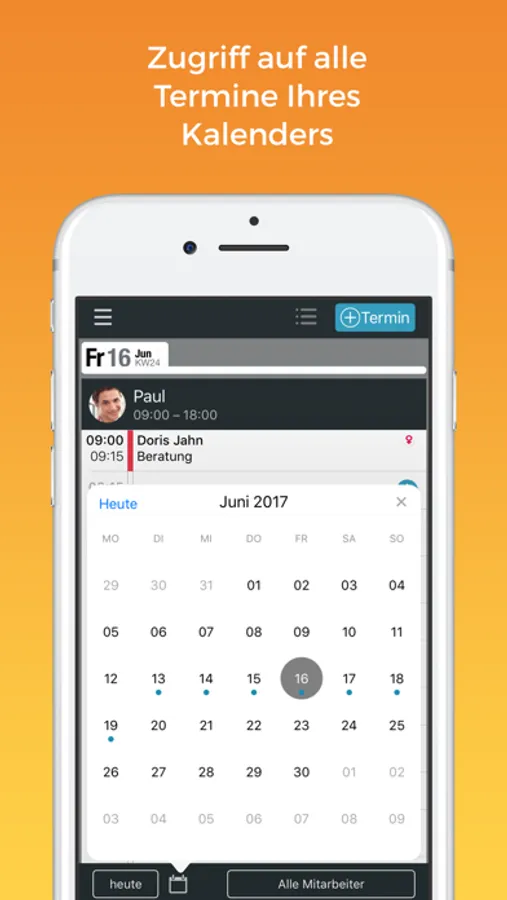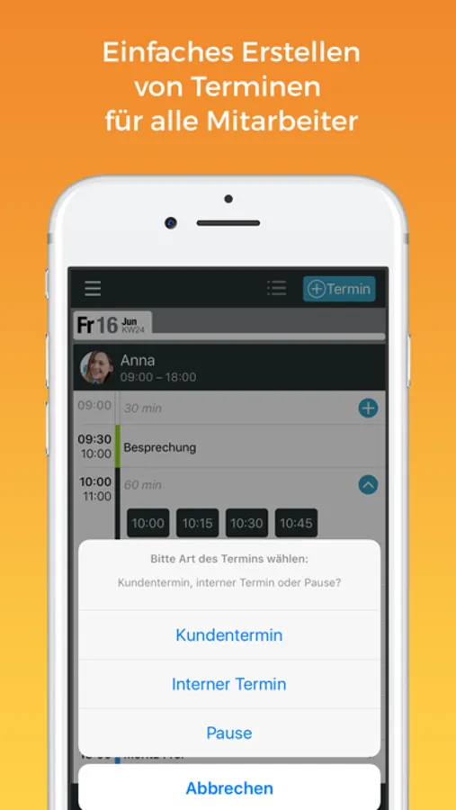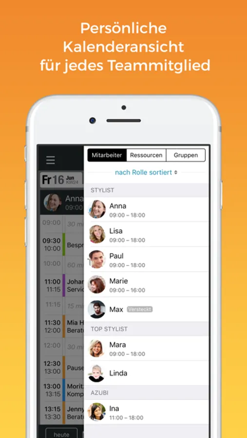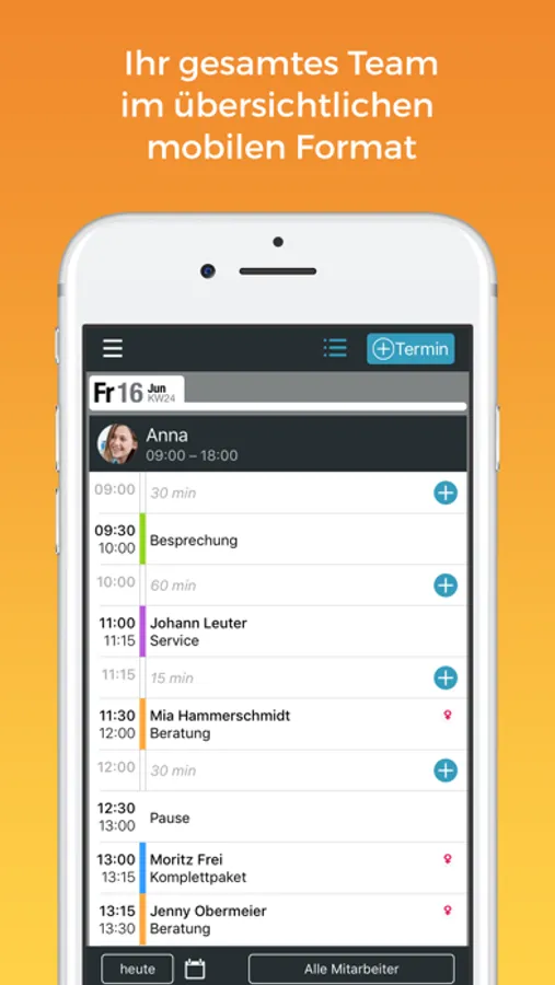 2. Kunden können direkt online Termine buchen. Die Termine werden so eingetragen, wie auch du diese planen würdest: perfekt ausgelastet und aufgeteilt auf einzelne Mitarbeiter.