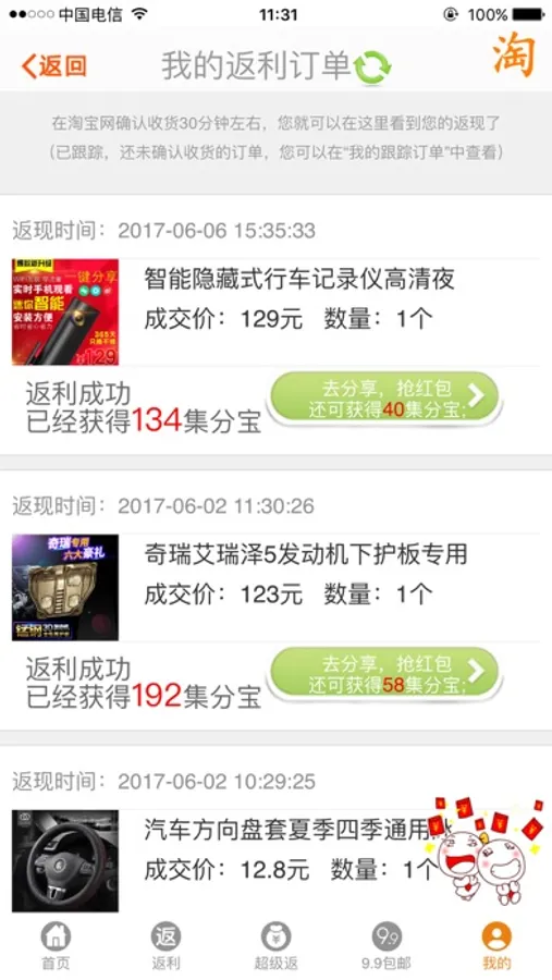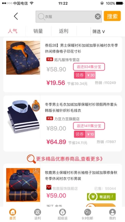 >购物返利:拥有返利APP,随时随地下单宝贝,件件返利永不落下,去淘宝、京东、唯品会等平台购物,最高比例可达商品价格的80%,让购物更省钱!