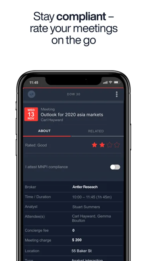 Receive Push Notifications allowing you to automatically rate, comment and set a monetary value on all research or corporate access events.