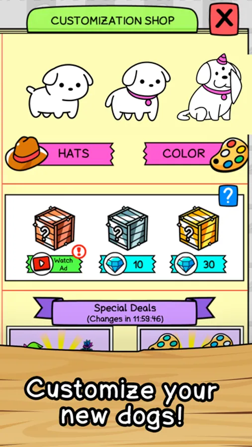 • Use dog eggs to earn coins, buy new creatures and make even more money
