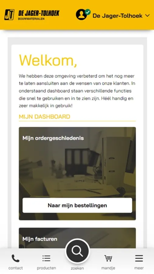 Met de Jager Tolhoek App kunt u ook digitaal bestellen. U geeft zelf aan waar u de materialen af wilt halen, of waar uw bestelling bezorgd moet worden.