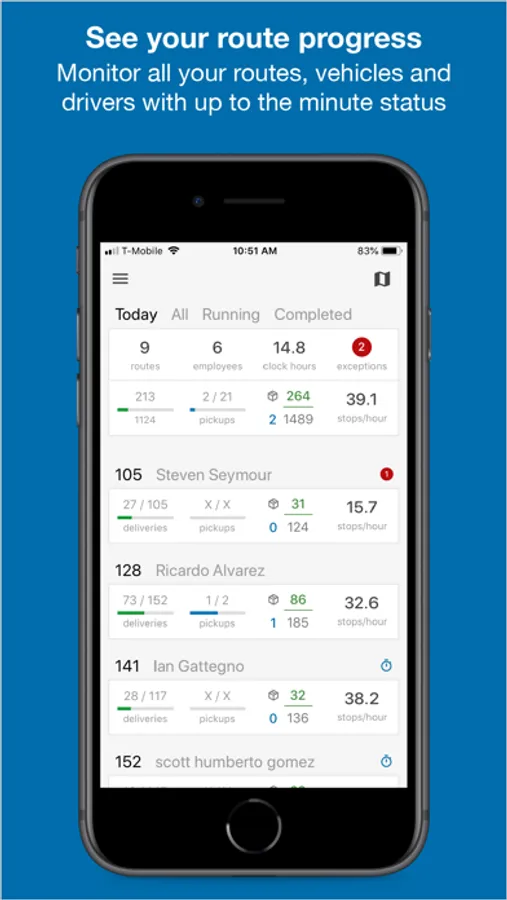 See up to the minute progress for all your routes. Resolve exceptions before its too late. Keep your service numbers high. Maximize your bottom line.