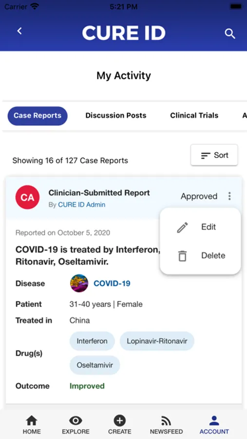 With the CURE Mobile App and Website, you can submit your experience treating an interesting patient and review the experiences of other clinicians with “drug repurposing” – i.e. using existing drugs in new ways (for new diseases, in new combinations, or new doses/durations). You can also participate in discussions with a global clinical community.