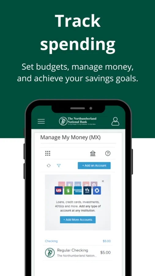 [+] Hamburger menu with all of the transactional tools needed to stay on top of your finances