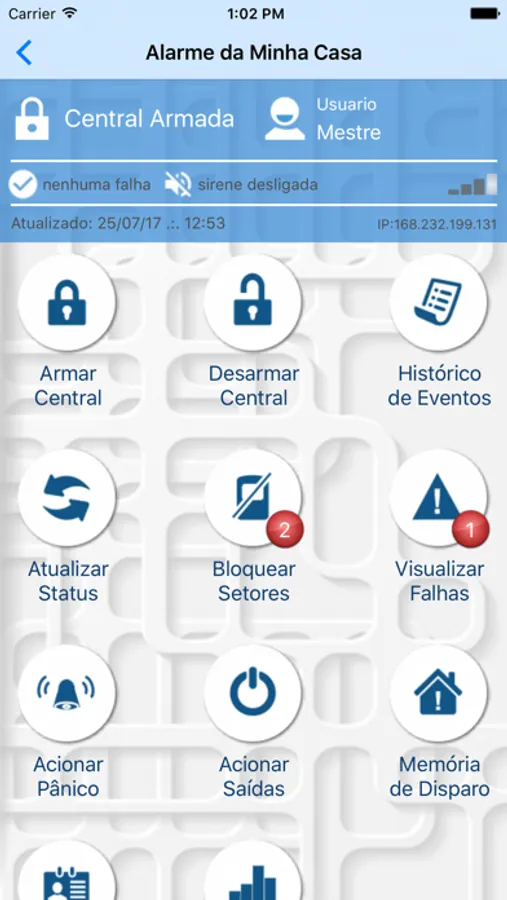 Permite o controle e monitoramento total da central de alarme, gerando notificações conforme o tipo do evento. Histórico completo de todos os eventos enviados e recebidos.