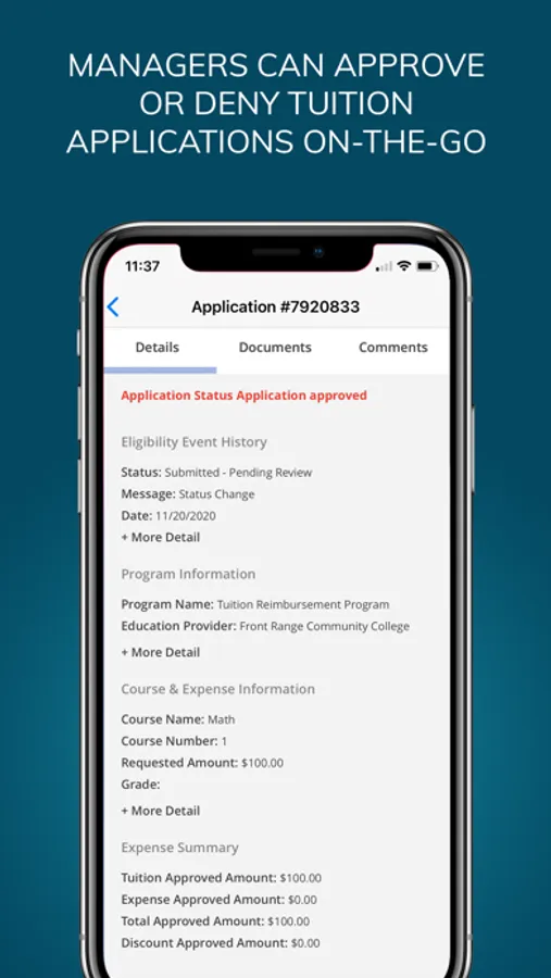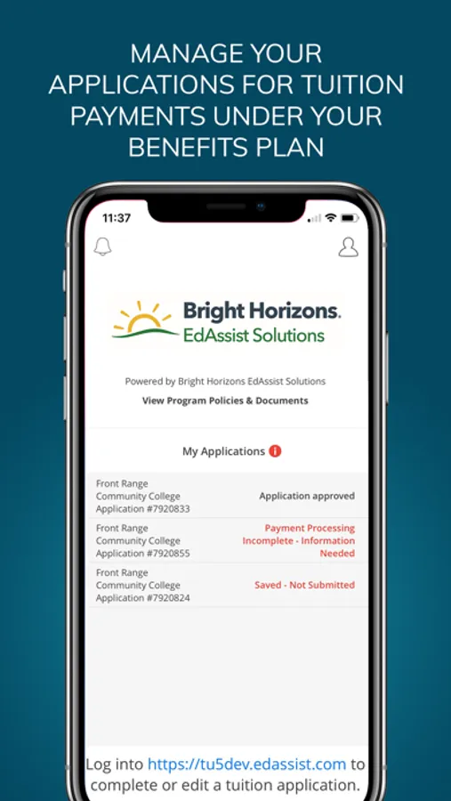 Use this app to apply for tuition assistance and track the status of applications for tuition payments under your employer’s benefits plans.