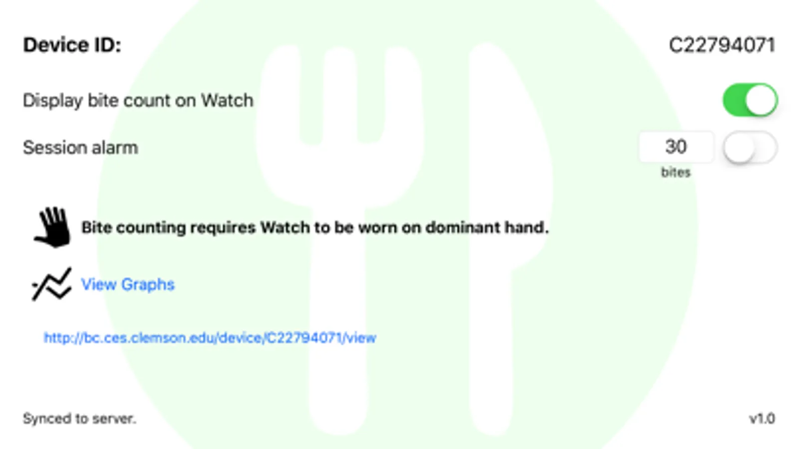 The watch must be worn on your dominant hand or the one primarily used for eating. Prepare the food you are about to eat. Start the app just before taking your first bite. End the app after you take the last bite. Count your bites every meal. Use bites as an estimate of your portion size. Work to reduce your portion size.