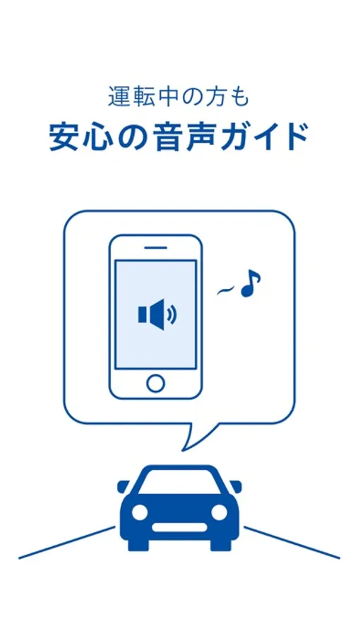 音声ガイド機能をONにすることで、充電予定のスポットに近づくと音声でお知らせします。運転中の方も安心してご利用いただけます。
