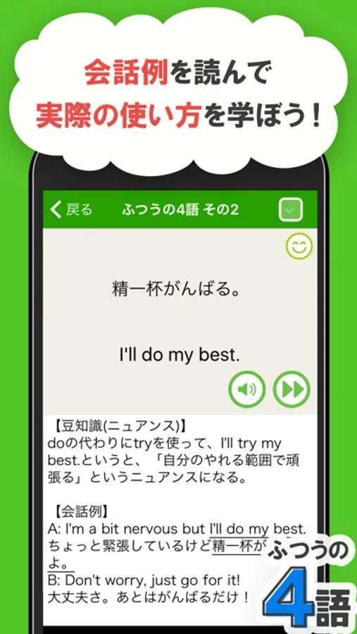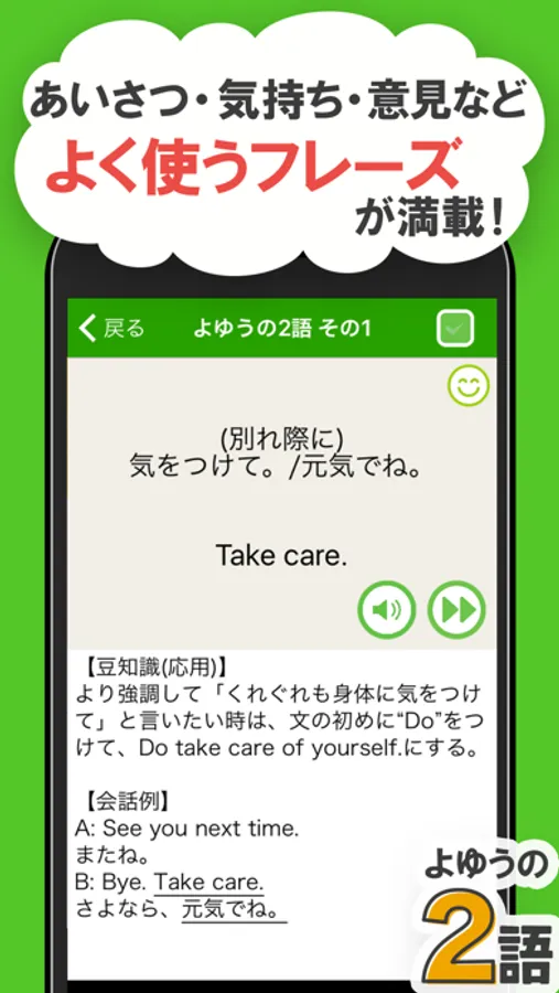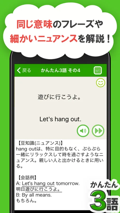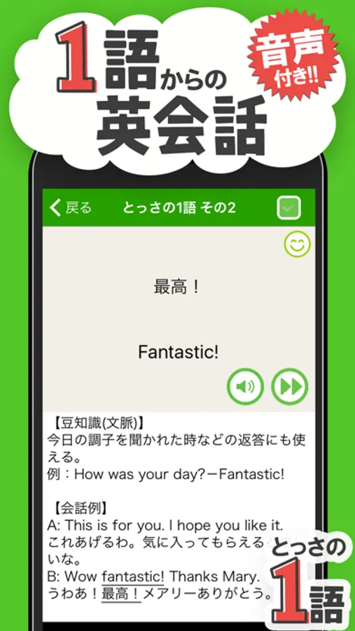 短いから覚えられる!1から5語の使える初心者向けの英会話フレーズアプリ!
